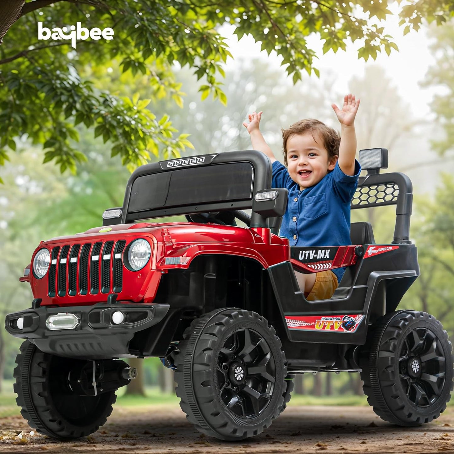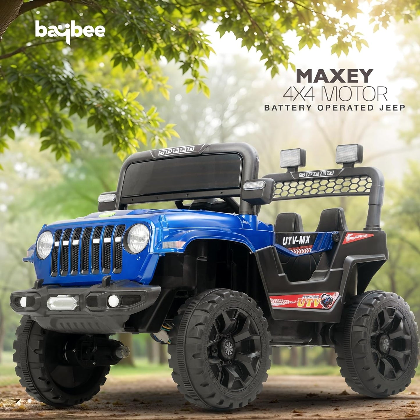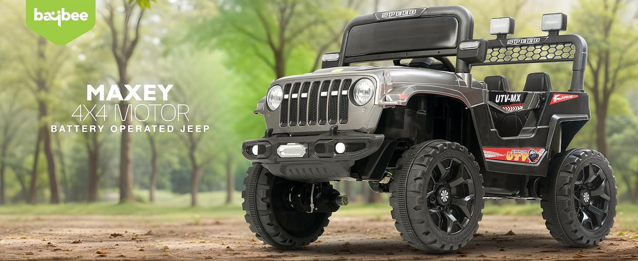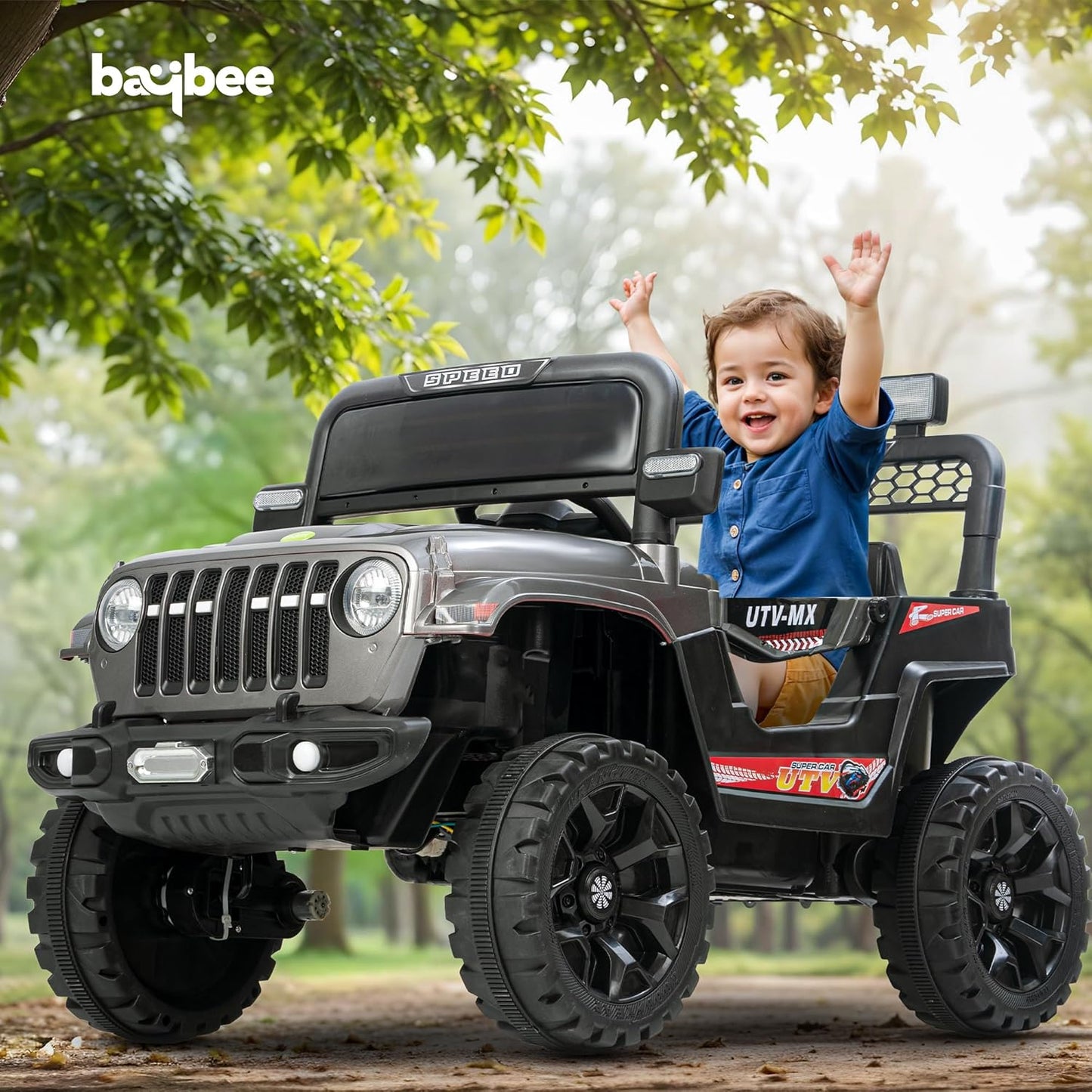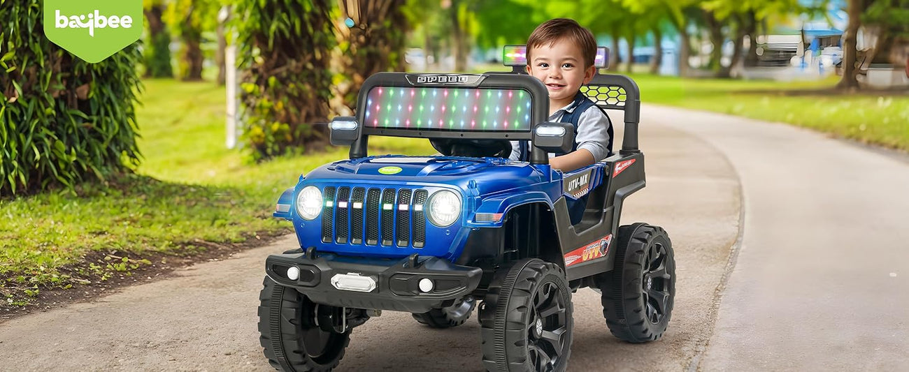 Designed to look and feel like a real off-road Jeep, this ride-on car features a robust 4×4 drive that can handle various terrains, from grass and gravel to dirt and pavement. The durable wheels and sturdy build give children an authentic, adventurous feel, making it the ultimate off-road experience tailored for young thrill-seekers. With a 2.4 GHz remote control, parents have full command of the car’s speed and direction, providing peace of mind while kids explore. This parental override feature is perfect for younger children who are still mastering their driving skills, ensuring parents can step in for safe and secure play whenever needed. This Baybee Maxey 4×4 Jeep is equipped with eye-catching LED and RGB lights that make every ride feel like a party! The front and rear lights not only look cool, but they also provide better visibility. Kids will love cruising around with the vibrant lights adding a touch of adventure to each ride, especially during evening playtime. Swing mode offers a unique experience by adding a gentle, rocking motion that feels like a mini adventure even while stationary. This soothing swing function is perfect for younger children who enjoy a soft, rocking sensation, making the car feel even more engaging and relaxing for those who need a momentary break from driving. The Jeep’s integrated music system adds a layer of fun, letting kids enjoy their favorite tunes as they drive. Equipped with preloaded tunes and MP3 compatibility, it allows little ones to groove to catchy music, enhancing their experience while promoting a sense of rhythm and joy. Parents can connect devices to play custom playlists as well! With a rechargeable battery, the Baybee Maxey Jeep promises up to 40 minutes of fun without frequent interruptions for recharging. Designed for endurance, it allows children to play continuously for an extended time, ensuring fewer breaks in the action. Simply plug it in after play, and it’s ready to go again for the next round of adventure.