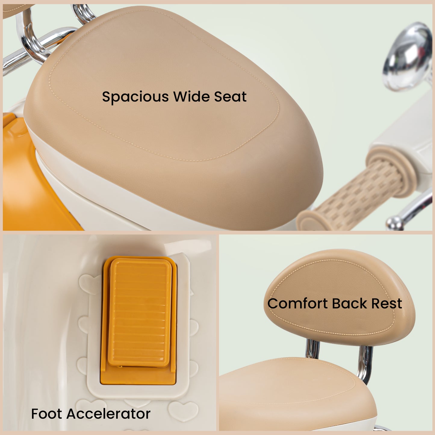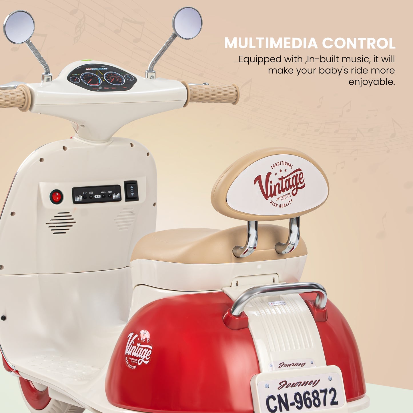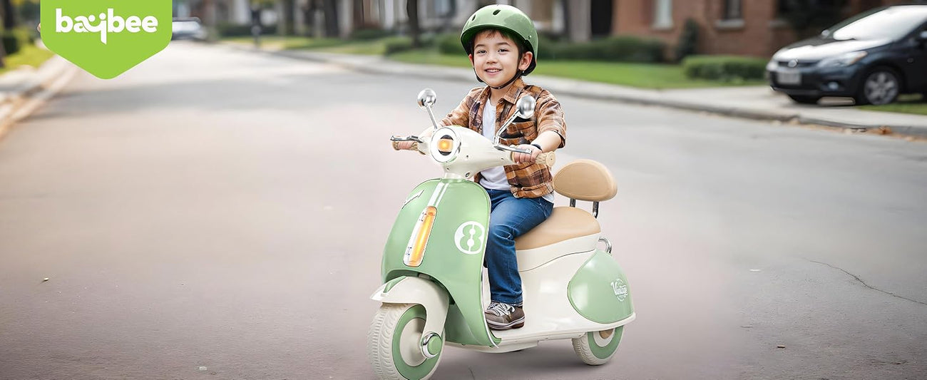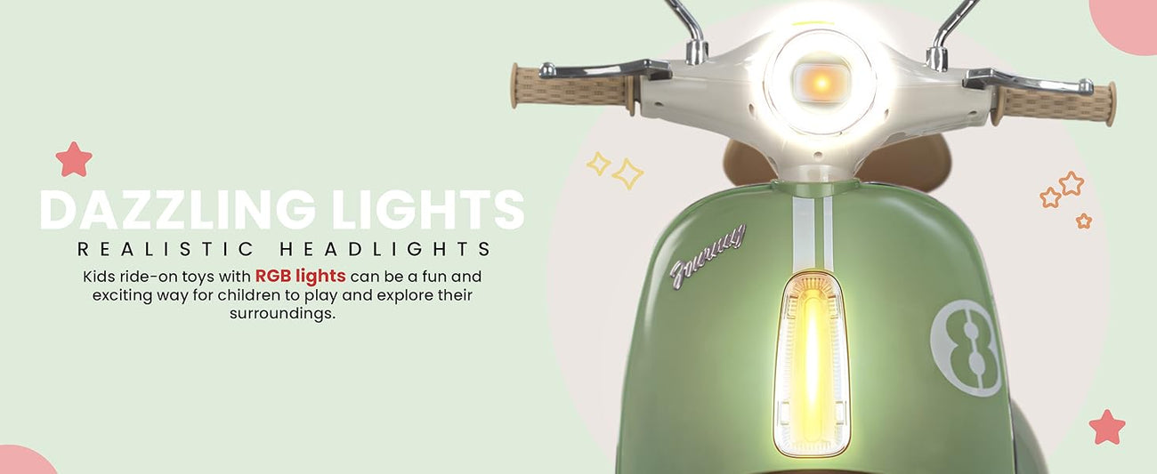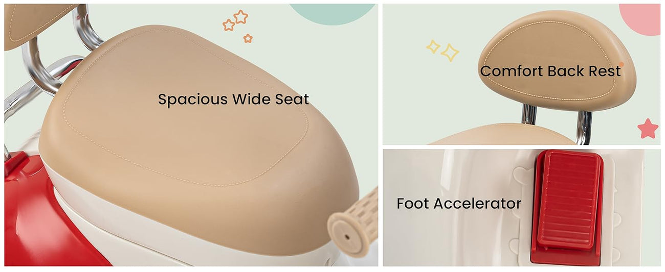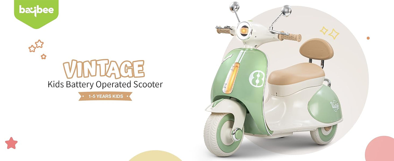 Easy and Independent Riding: The Baybee Vintage battery-operated bike is designed for young children to use with ease, allowing toddlers to ride independently. With a foot pedal for acceleration, your child can smoothly navigate the bike on flat surfaces, fostering a sense of confidence and control. Interactive Multi-Functions: This electric bike is packed with fun features for kids. By pressing the built-in musical, USB, and horn buttons, children can enjoy music while they ride via USB connectivity. The bike also includes working headlights for a realistic touch, and easy-to-use on/off and forward/backward switches to enhance the riding experience. Stable 3-Wheel Design: Featuring a 3-wheel design, the Baybee bike offers excellent stability and balance, minimizing the risk of falls for young riders. The anti-skid tire pattern increases traction on various flat surfaces, enabling children to ride confidently with ease. Safe and Durable Construction: Made from safe, environmentally friendly plastic, Baybee’s ride-on bike prioritizes children’s safety. Its sturdy construction is built to endure active play, and the included rechargeable battery, along with a charger adapter, provides up to 40 minutes of playtime after an 8-12 hour charge. Stylish and Safe LED Lights: This rechargeable battery bike boasts bright LED lights at the front, enhancing visibility for safe riding in low-light conditions. With a cool, realistic design that mimics an actual bike, it is sure to capture children’s interest. The product includes an easy-to-understand instruction manual and charger, making it an ideal gift for kids aged 1 to 3 years.