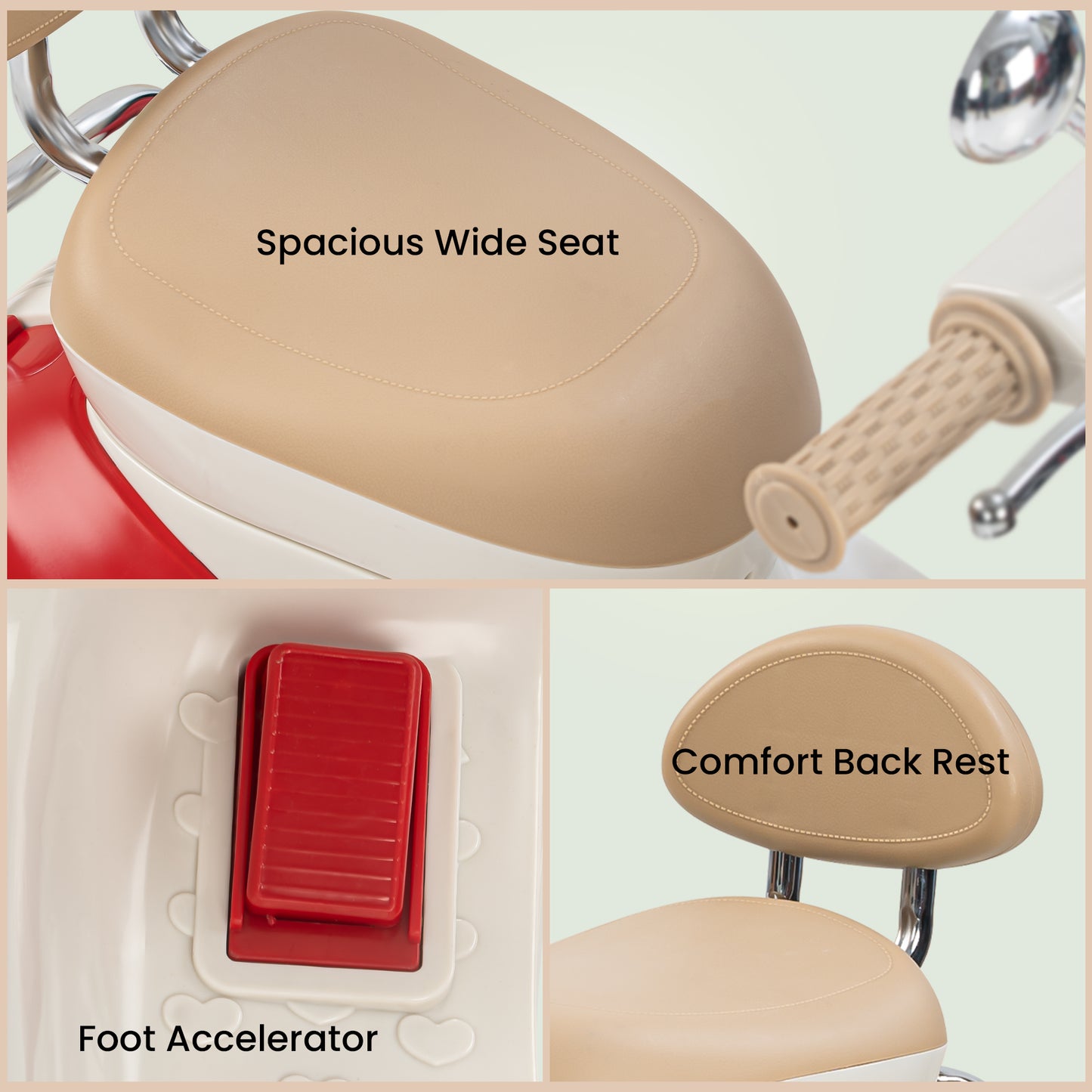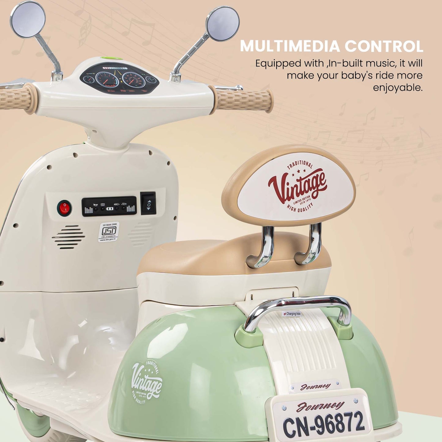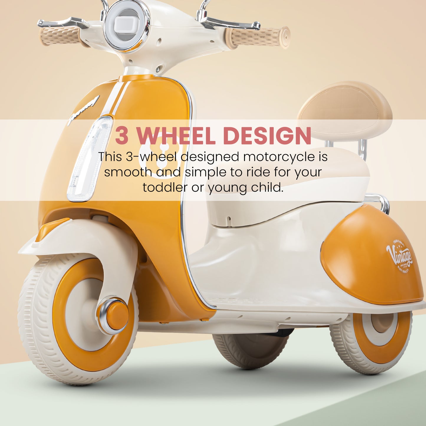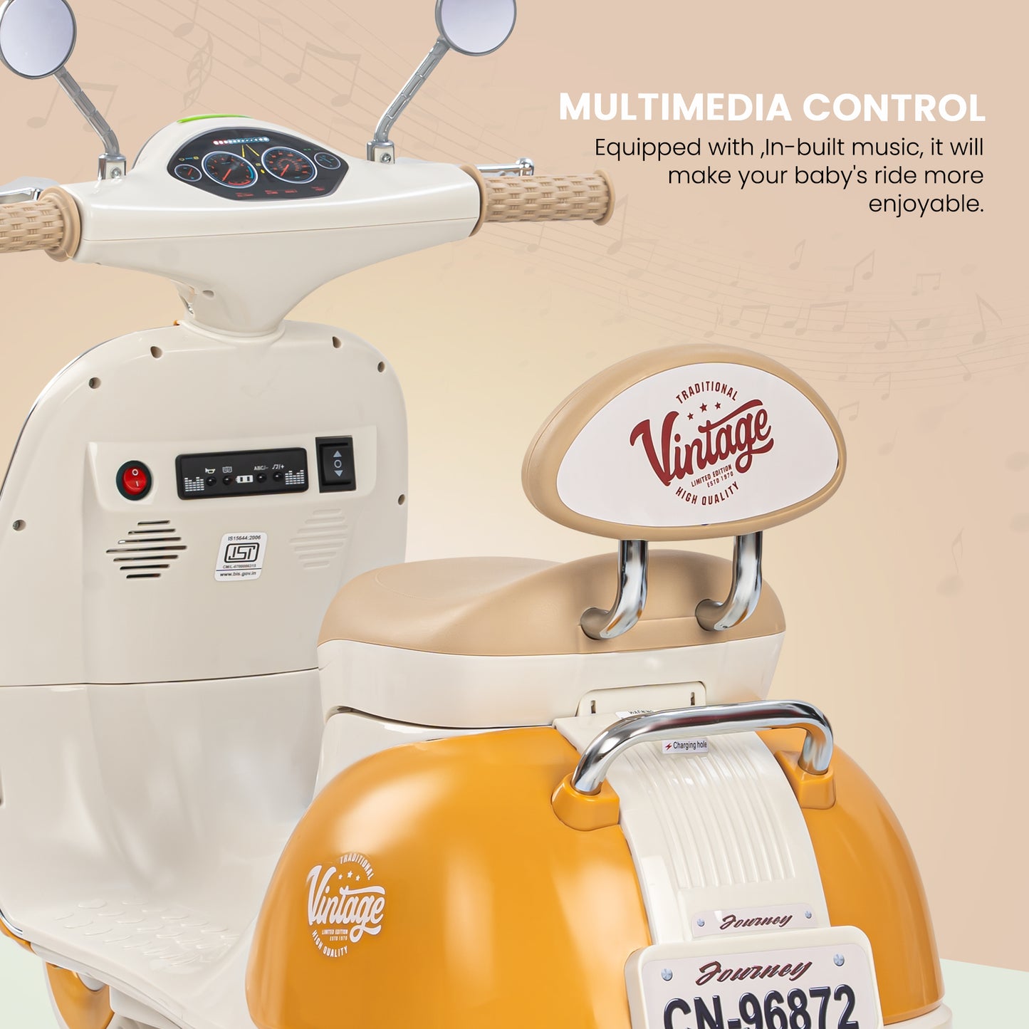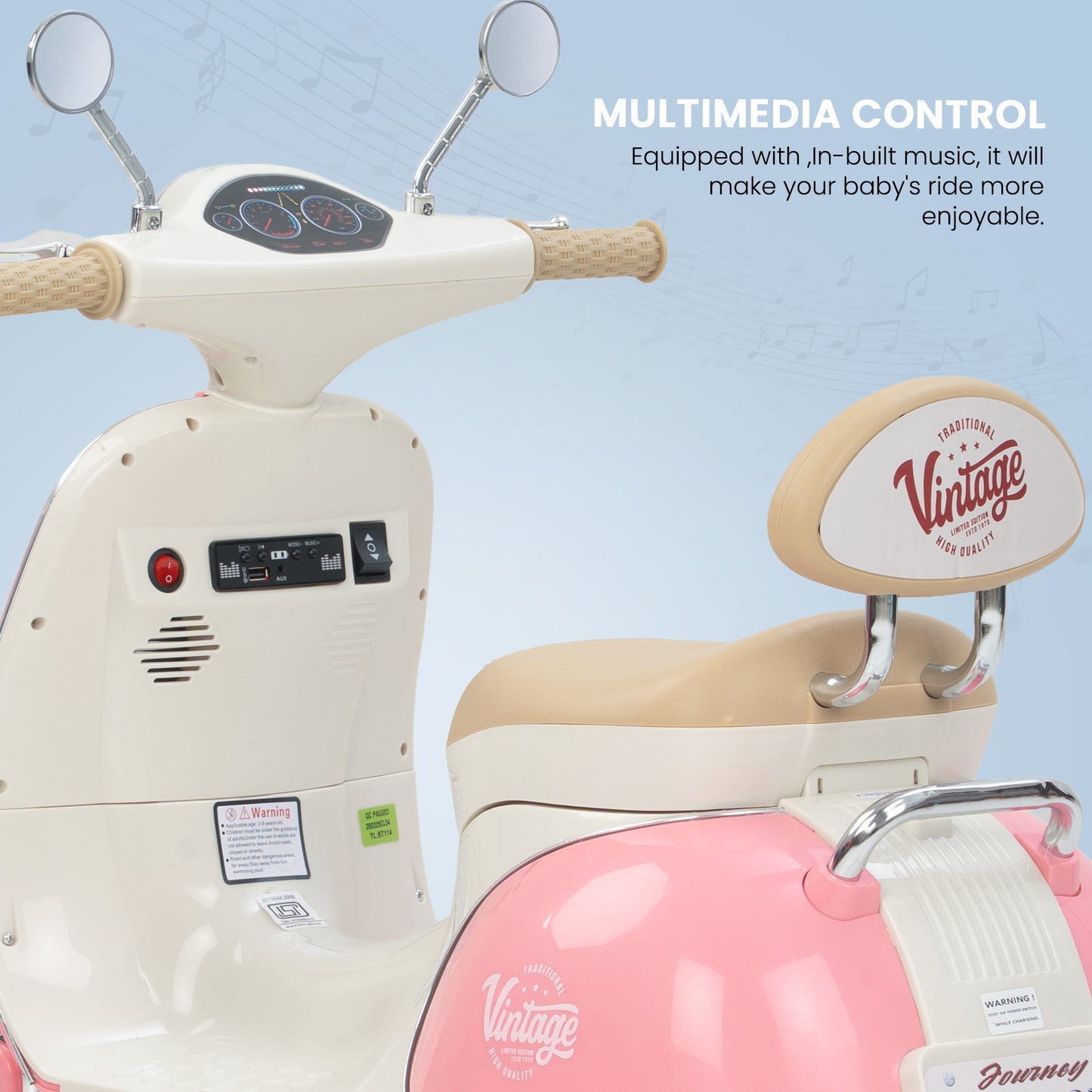 Easy and Independent Riding: The Baybee Vintage battery-operated bike is designed for young children to use with ease, allowing toddlers to ride independently. With a foot pedal for acceleration, your child can smoothly navigate the bike on flat surfaces, fostering a sense of confidence and control. Interactive Multi-Functions: This electric bike is packed with fun features for kids. By pressing the built-in musical, USB, and horn buttons, children can enjoy music while they ride via USB connectivity. The bike also includes working headlights for a realistic touch, and easy-to-use on/off and forward/backward switches to enhance the riding experience. Stable 3-Wheel Design: Featuring a 3-wheel design, the Baybee bike offers excellent stability and balance, minimizing the risk of falls for young riders. The anti-skid tire pattern increases traction on various flat surfaces, enabling children to ride confidently with ease. Safe and Durable Construction: Made from safe, environmentally friendly plastic, Baybee’s ride-on bike prioritizes children’s safety. Its sturdy construction is built to endure active play, and the included rechargeable battery, along with a charger adapter, provides up to 40 minutes of playtime after an 8-12 hour charge. Stylish and Safe LED Lights: This rechargeable battery bike boasts bright LED lights at the front, enhancing visibility for safe riding in low-light conditions. With a cool, realistic design that mimics an actual bike, it is sure to capture children’s interest. The product includes an easy-to-understand instruction manual and charger, making it an ideal gift for kids aged 1 to 3 years.