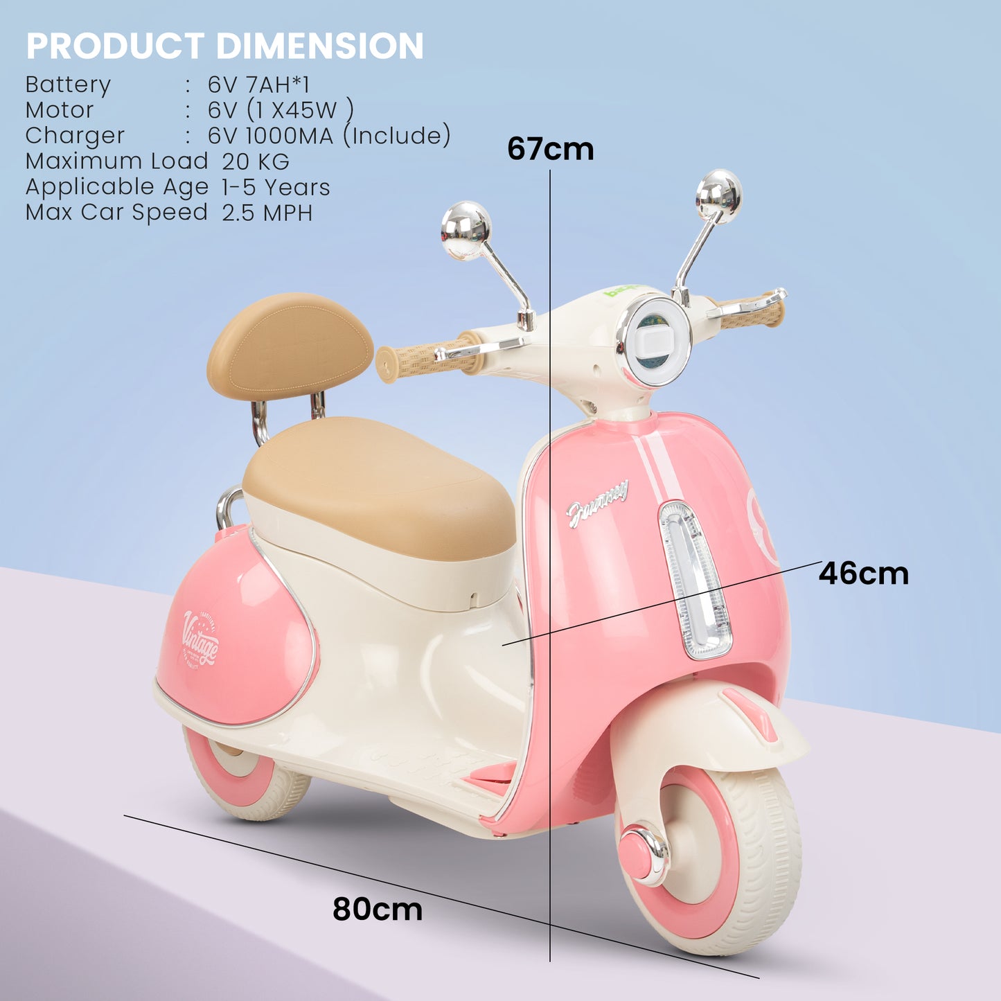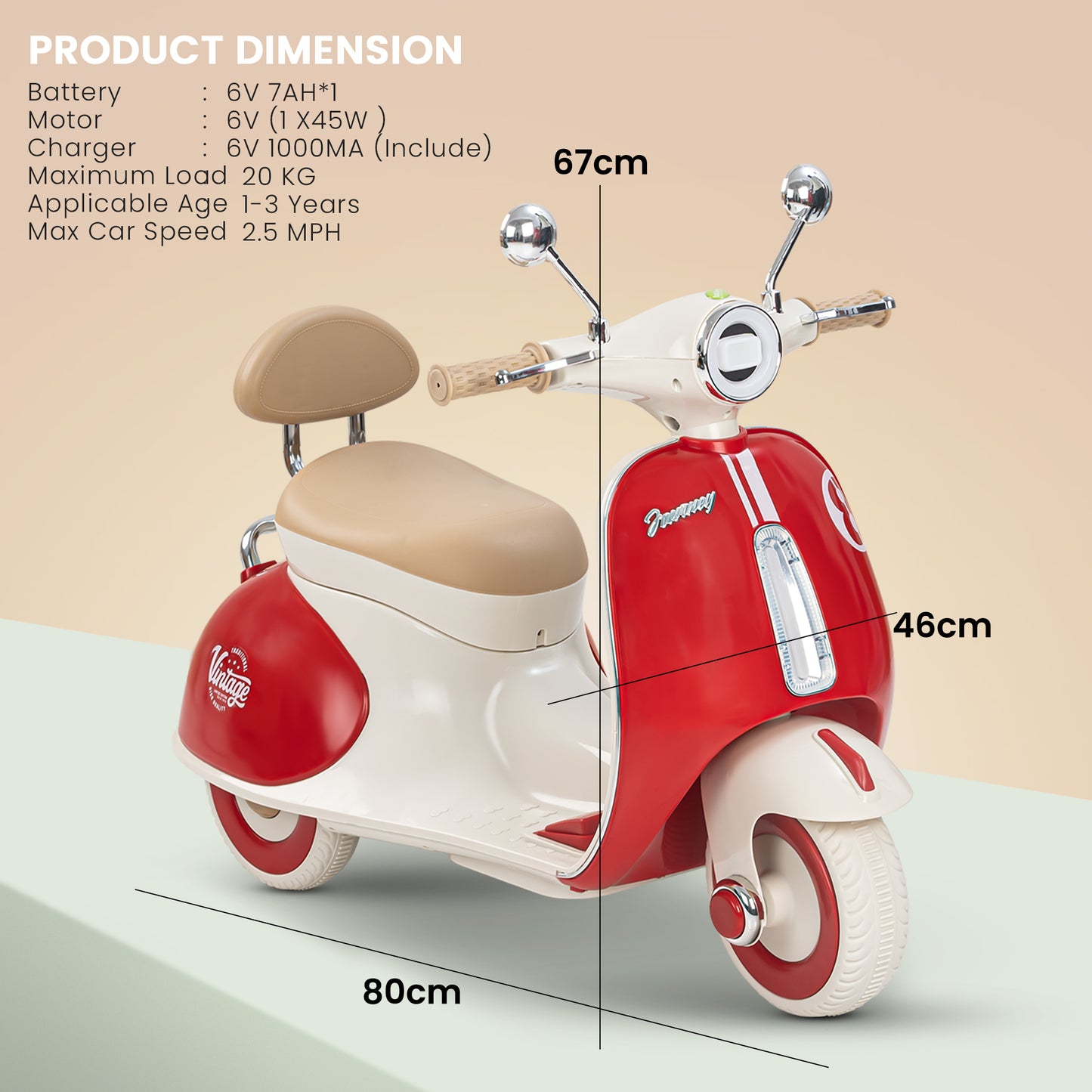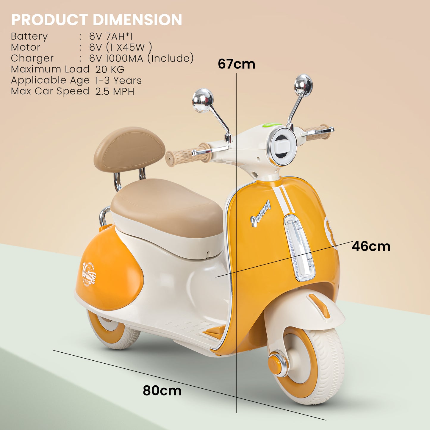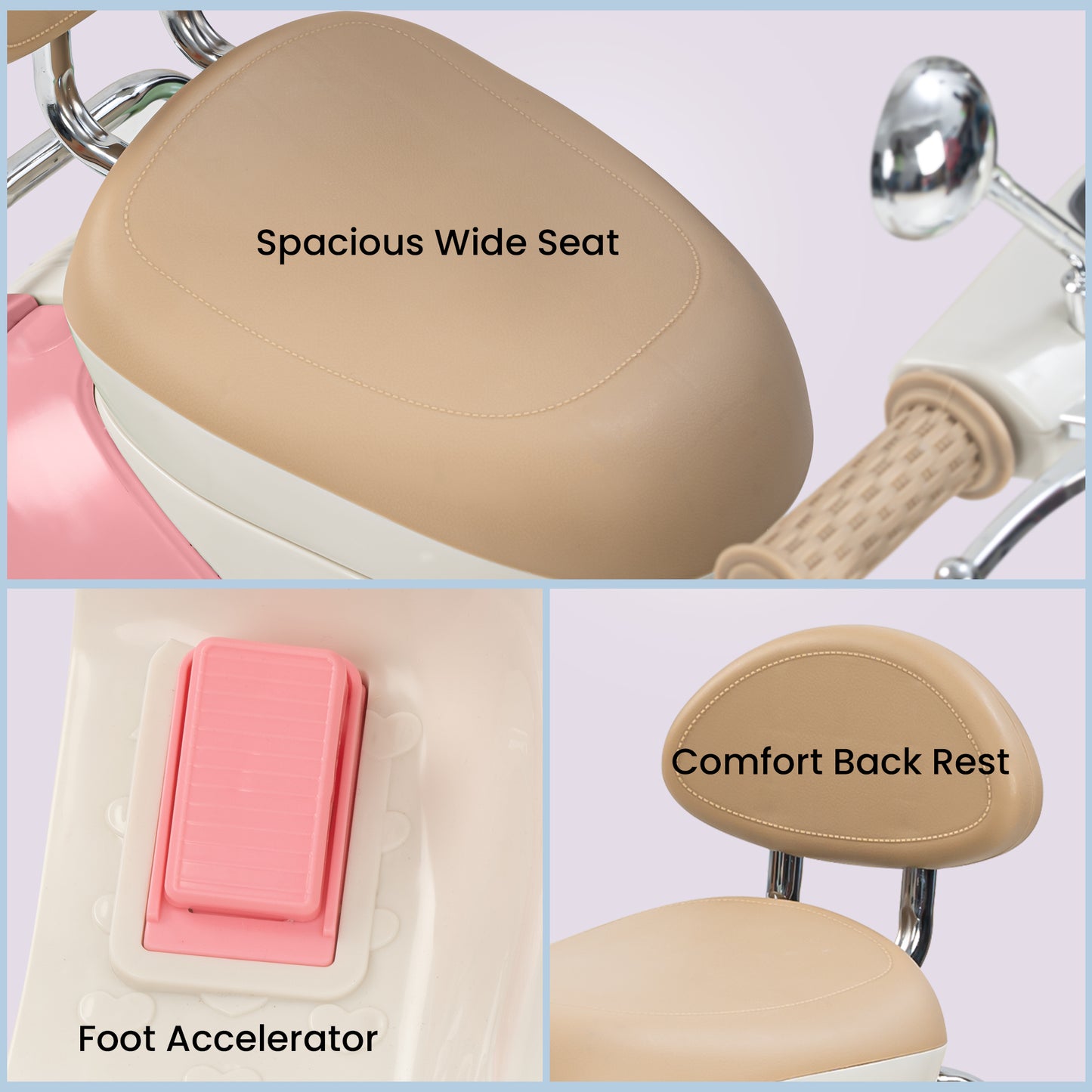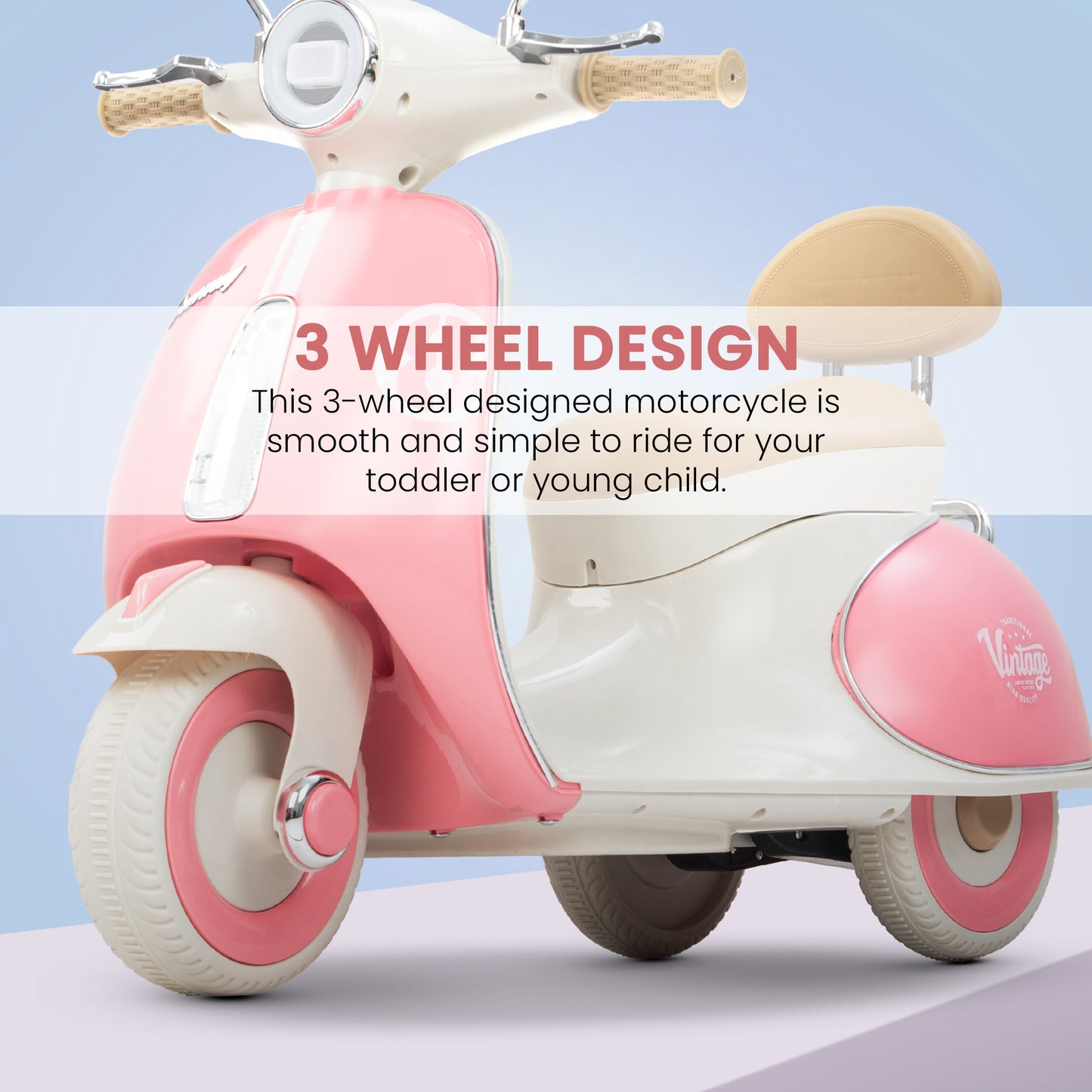 Easy and Independent Riding: The Baybee Vintage battery-operated bike is designed for young children to use with ease, allowing toddlers to ride independently. With a foot pedal for acceleration, your child can smoothly navigate the bike on flat surfaces, fostering a sense of confidence and control. Interactive Multi-Functions: This electric bike is packed with fun features for kids. By pressing the built-in musical, USB, and horn buttons, children can enjoy music while they ride via USB connectivity. The bike also includes working headlights for a realistic touch, and easy-to-use on/off and forward/backward switches to enhance the riding experience. Stable 3-Wheel Design: Featuring a 3-wheel design, the Baybee bike offers excellent stability and balance, minimizing the risk of falls for young riders. The anti-skid tire pattern increases traction on various flat surfaces, enabling children to ride confidently with ease. Safe and Durable Construction: Made from safe, environmentally friendly plastic, Baybee’s ride-on bike prioritizes children’s safety. Its sturdy construction is built to endure active play, and the included rechargeable battery, along with a charger adapter, provides up to 40 minutes of playtime after an 8-12 hour charge. Stylish and Safe LED Lights: This rechargeable battery bike boasts bright LED lights at the front, enhancing visibility for safe riding in low-light conditions. With a cool, realistic design that mimics an actual bike, it is sure to capture children’s interest. The product includes an easy-to-understand instruction manual and charger, making it an ideal gift for kids aged 1 to 3 years.